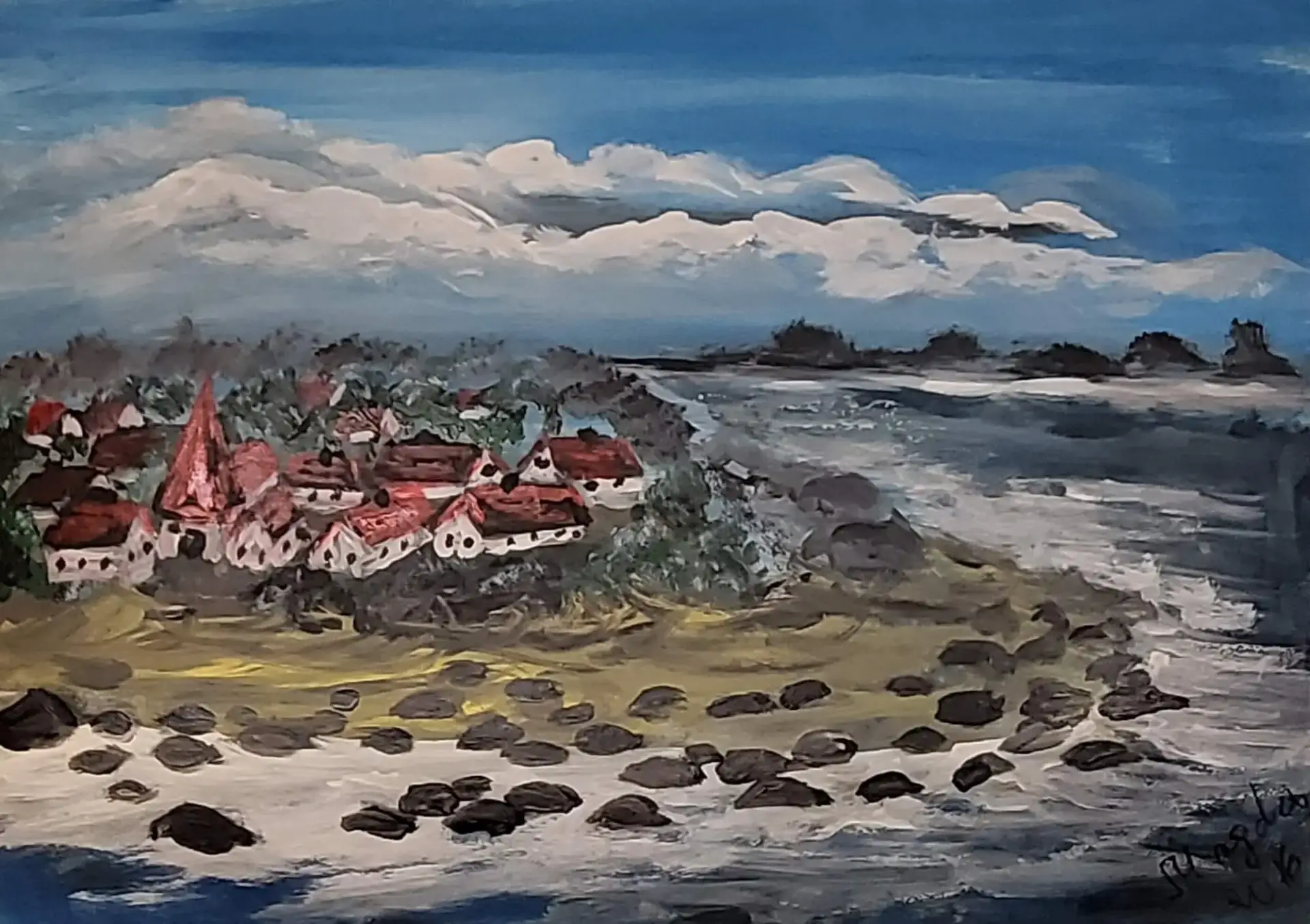 252-Acrylic painting VILLAGE 53 x 73 cm