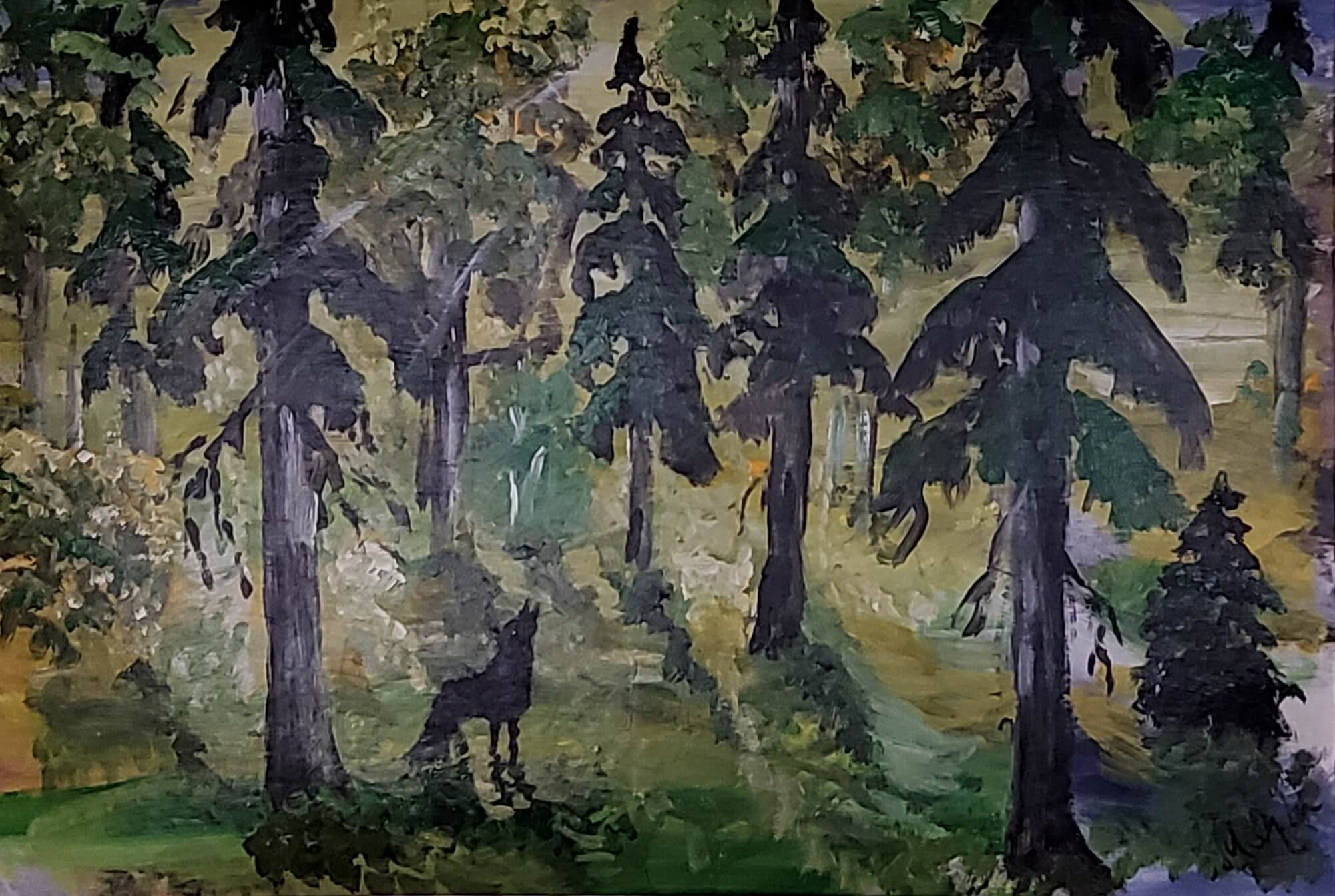 325-Acrylic painting WOLF 53 x 77 cm