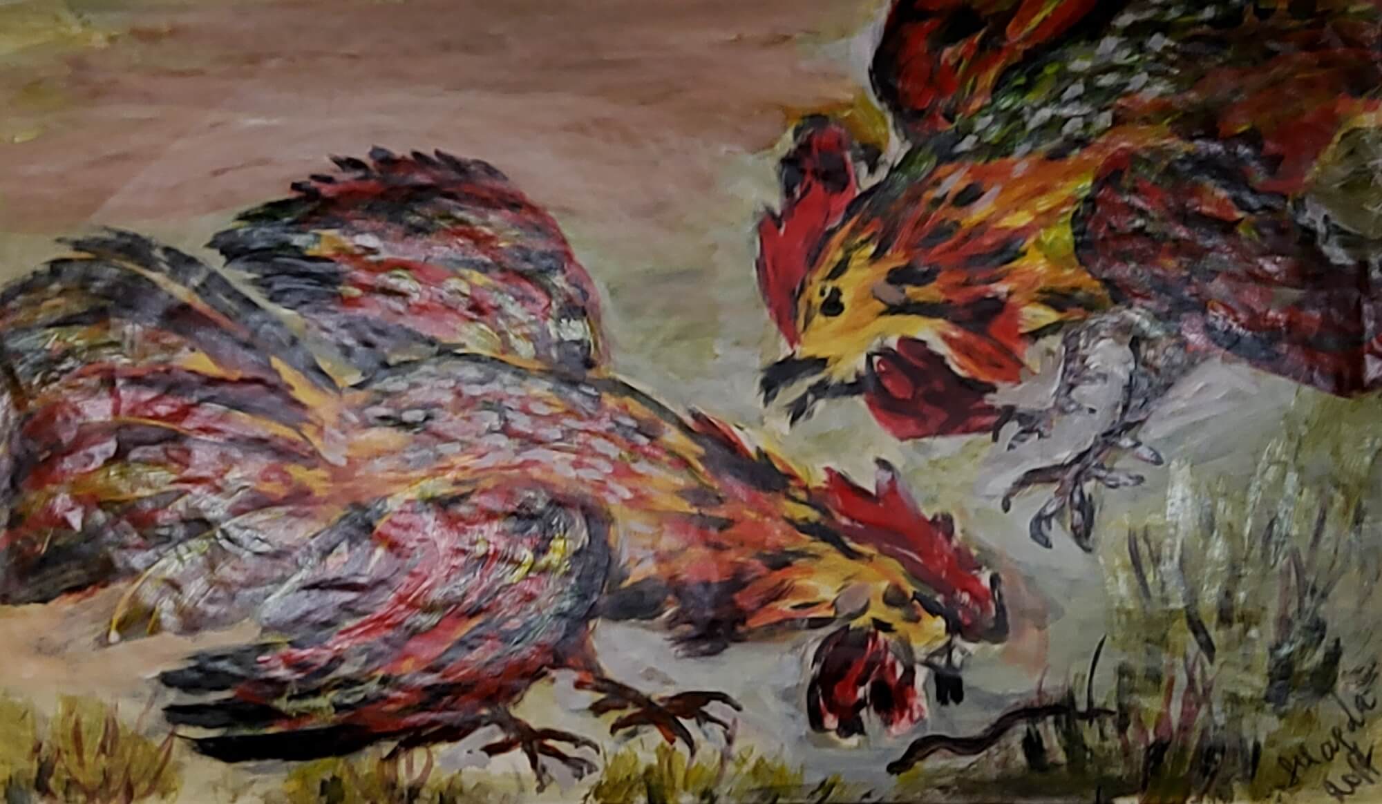 363-Acrylic painting COCKFIGHT 53 x 89 cm