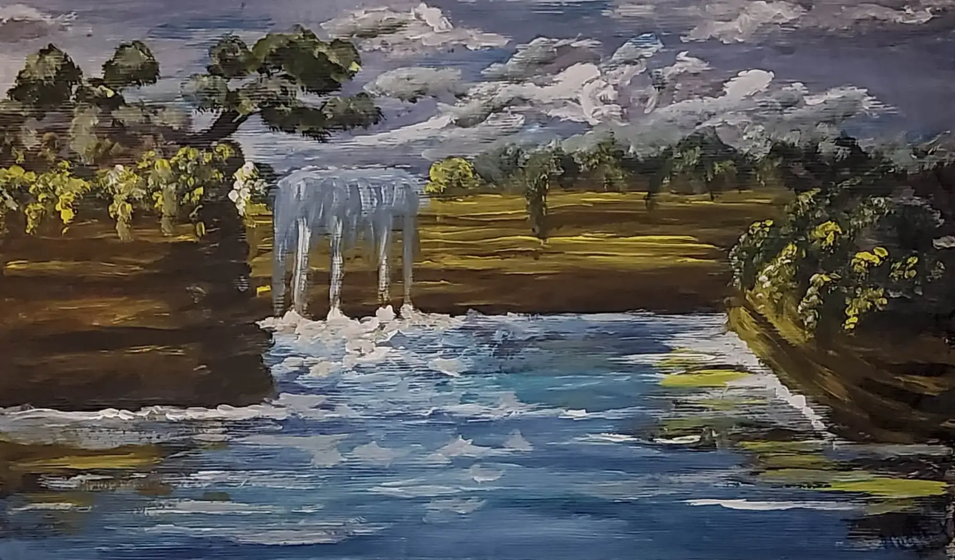 389-Acrylic painting WATERFALL 53 x 88 cm