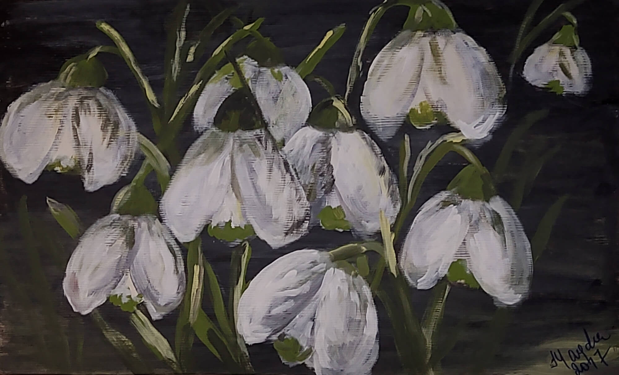 391-Acrylic painting Snowdrops 53 x 88 cm