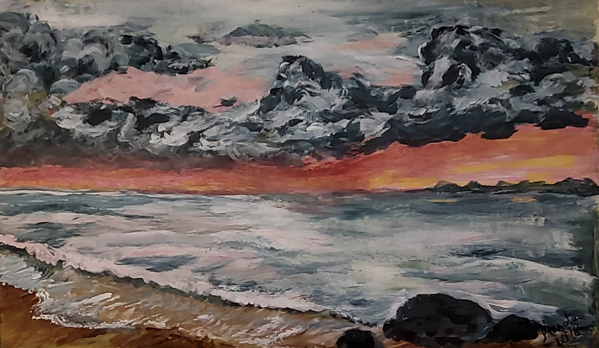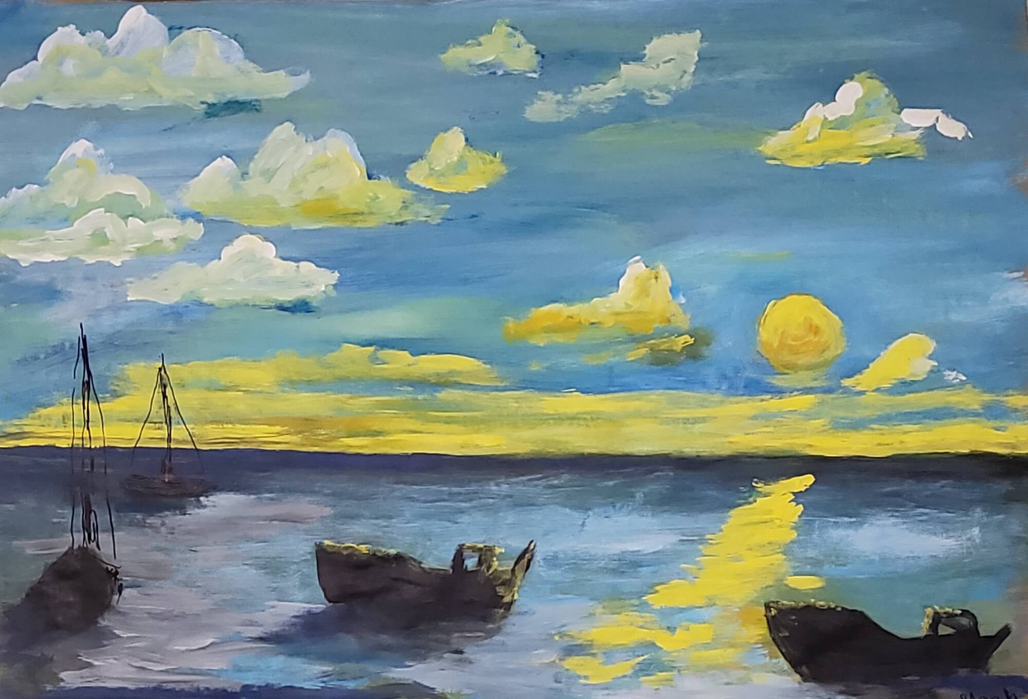 99-Acrylic painting Sunset 52 x 70 cm