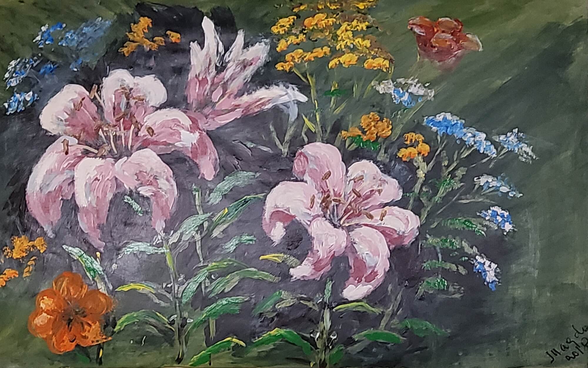 443-Acrylic painting LILIES 53 x 84 cm