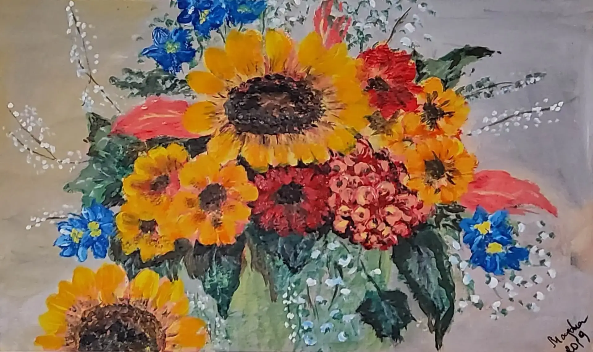 493-Acrylic painting FLOWERS 53 x 89 cm
