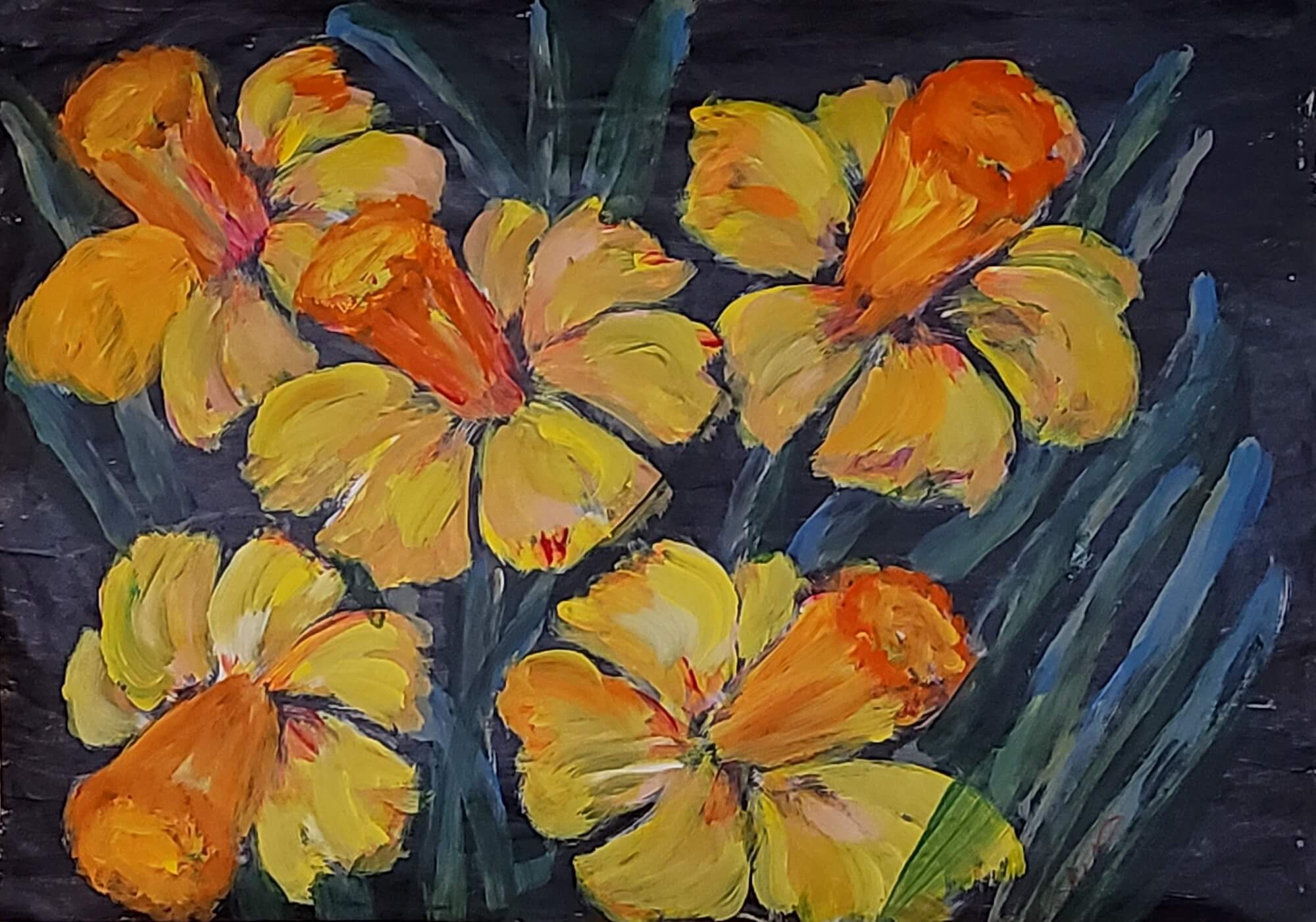 50-Acrylic painting Daffodils 53 x 74 cm