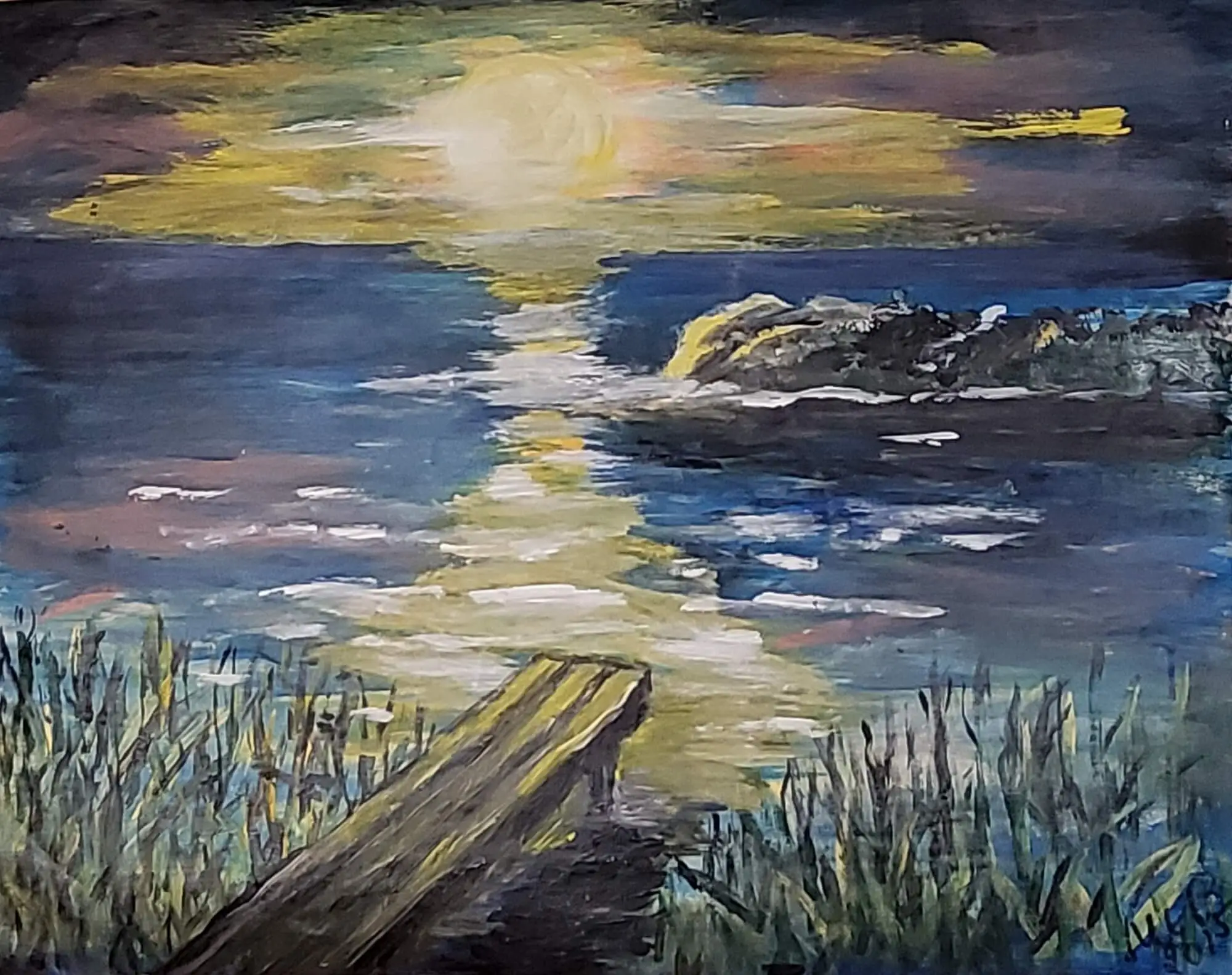 310-Acrylic painting FULL MOON 53 x 75 cm