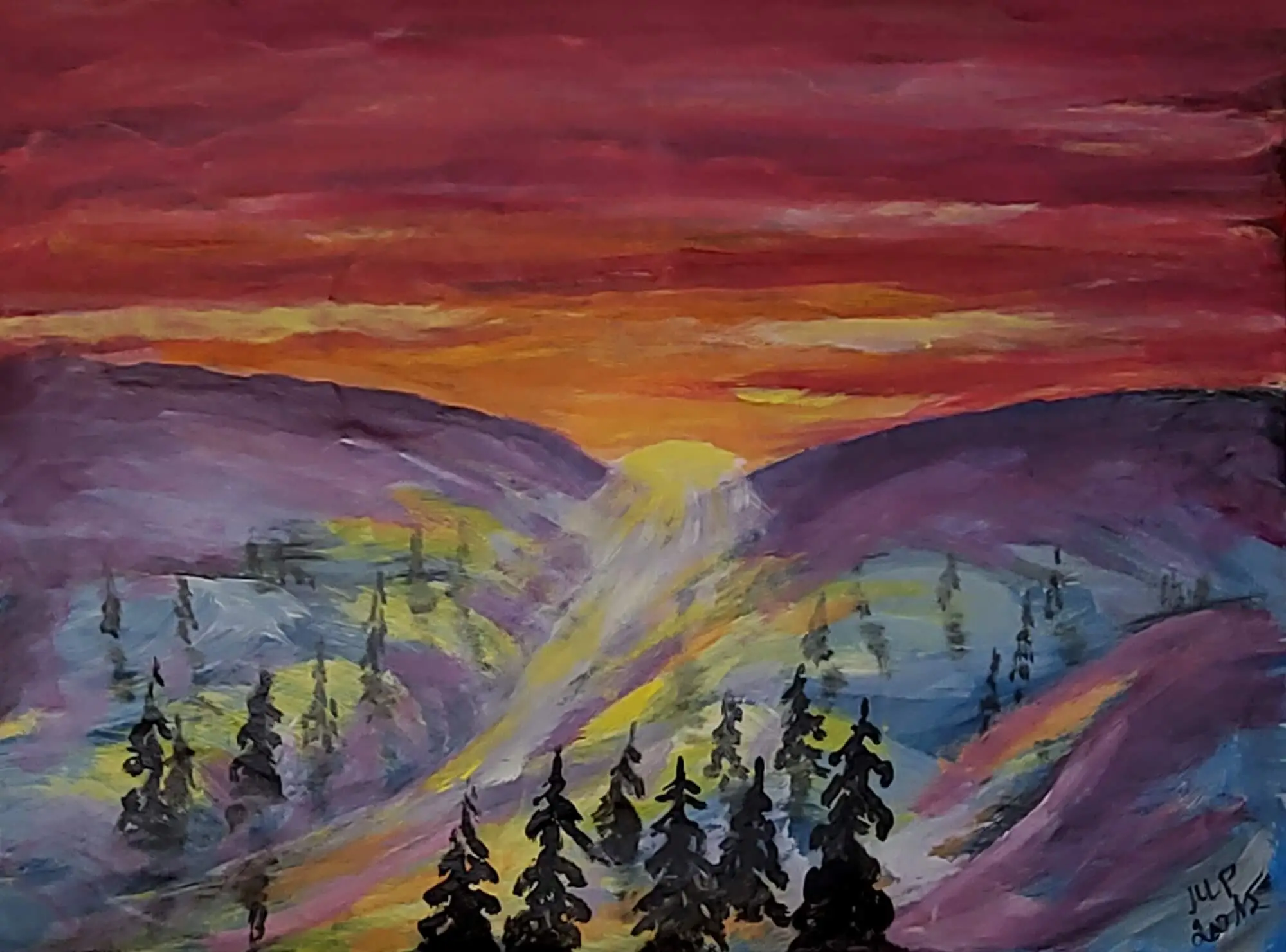 190-Acrylic painting Sunrise 53 x 72 cm